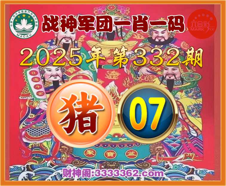 332期:《战神军团》 ☝️一肖一码☝️【猪】【07】开:00准