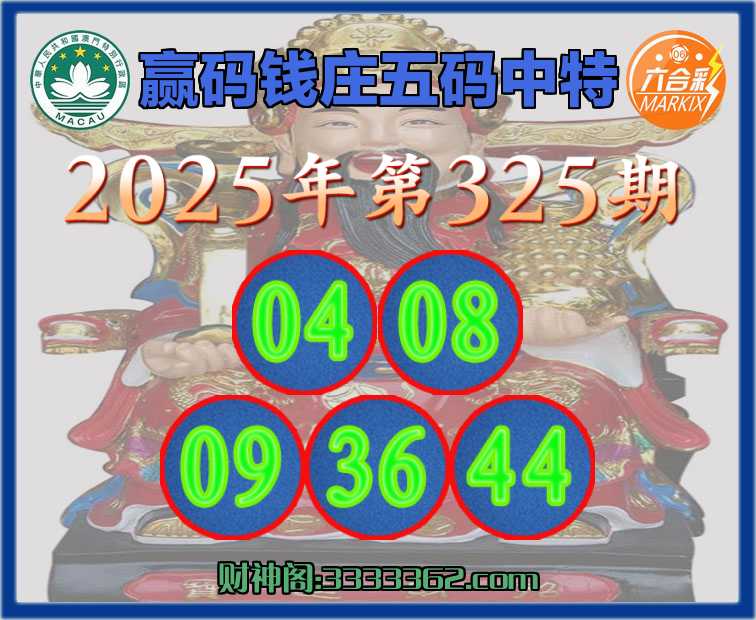 325期:🥉赢码钱庄🥉五码中特🥉【04.08.09.36.44】开:04