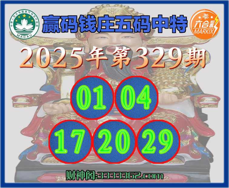 329期:🥉赢码钱庄🥉五码中特🥉【01.04.17.20.29】开:17